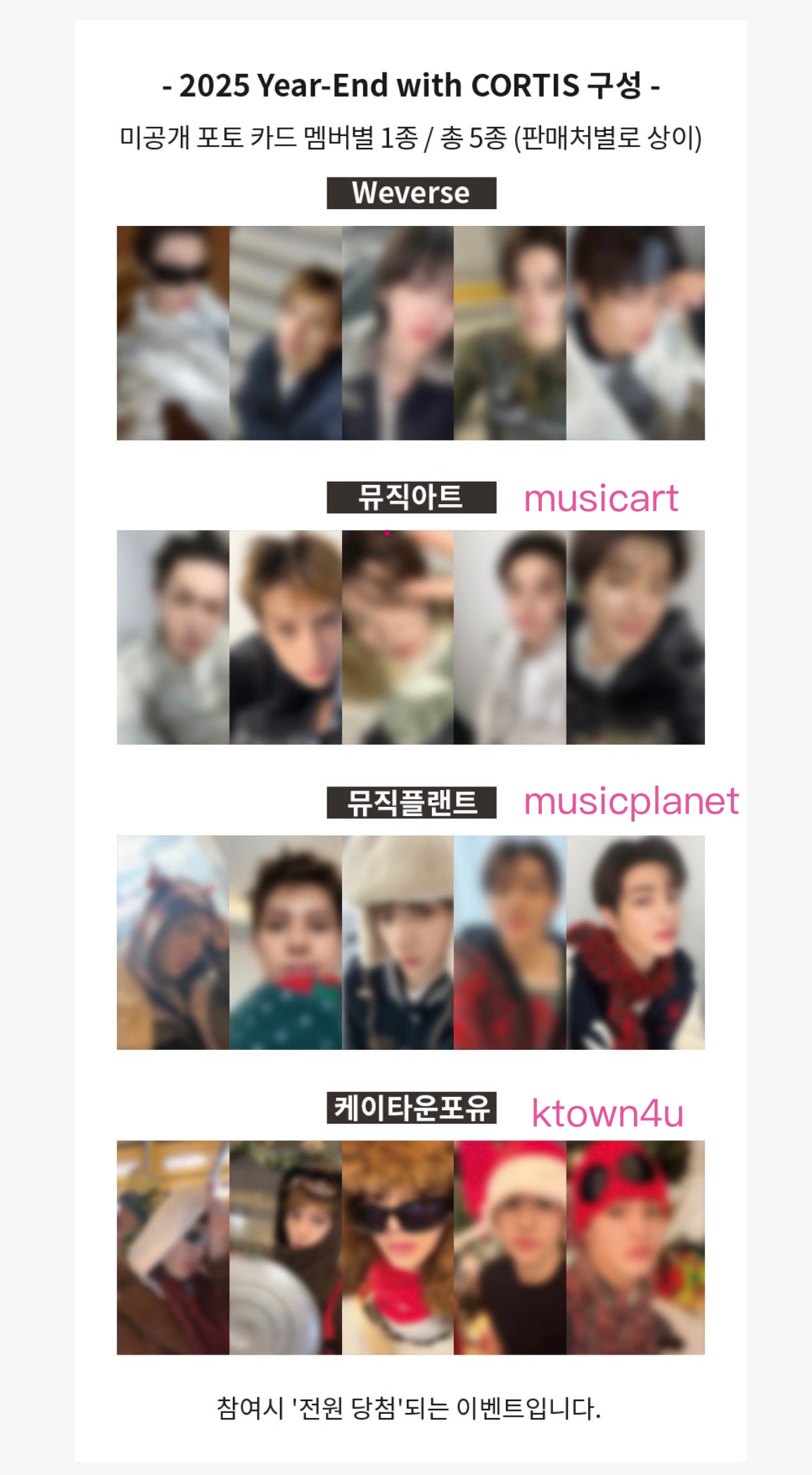 訂購一張隨機專輯(含專輯隨機小卡)、一張特典小卡(自選成員)