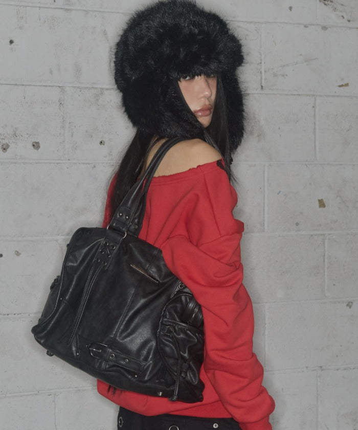 Fancyclub - BELTED WASHING LEATHER BAG (BLACK) F25QE990