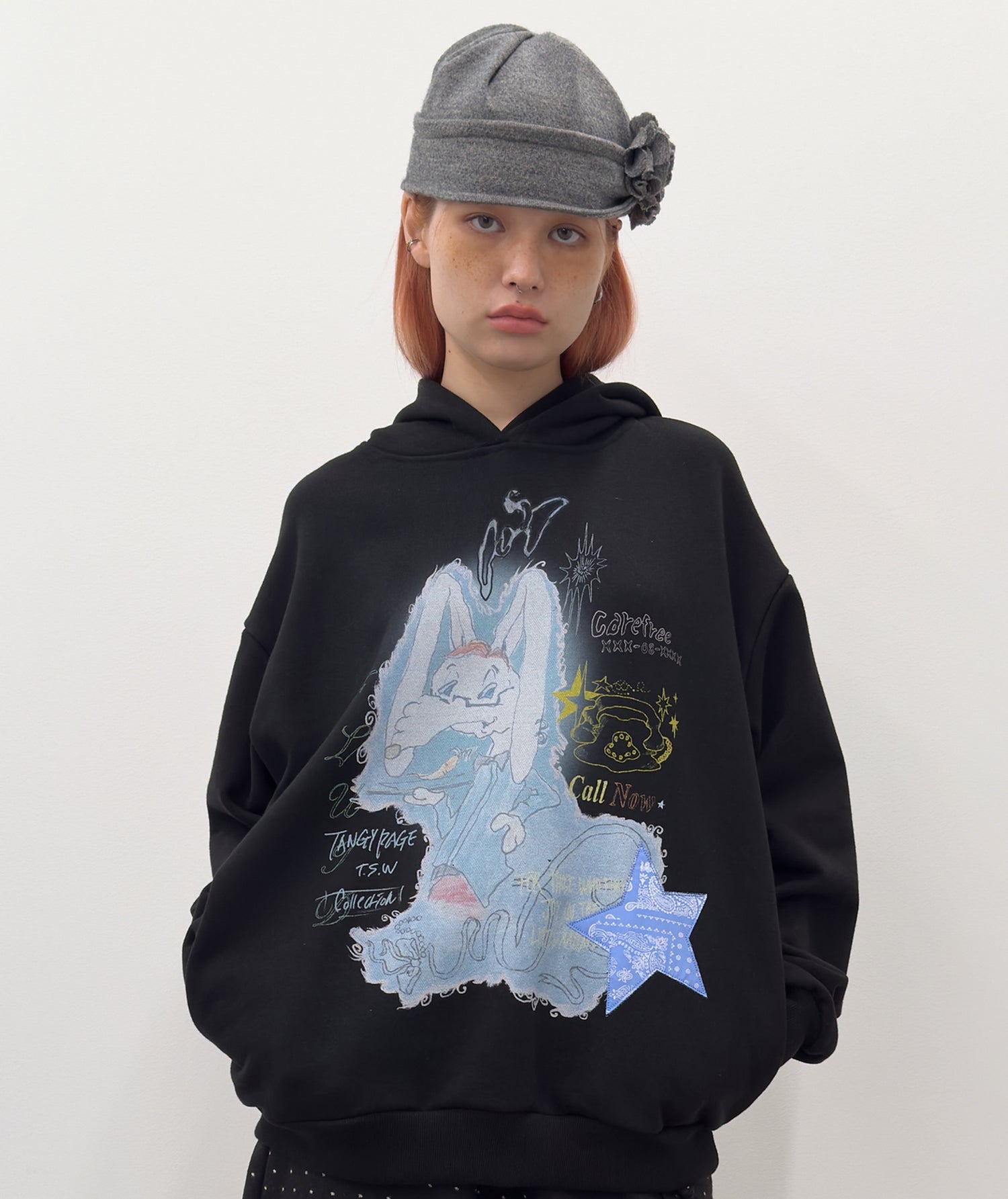 Star Patched Rabbit Hoodie [Black]